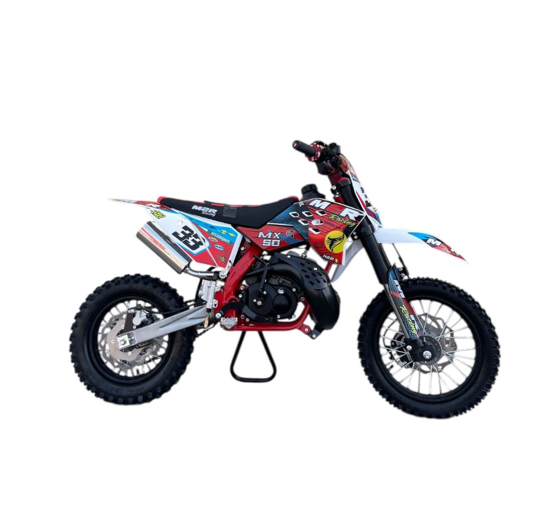 - Tipo de motor: Monocilíndrico 2T 50cc, refrigerado por aire